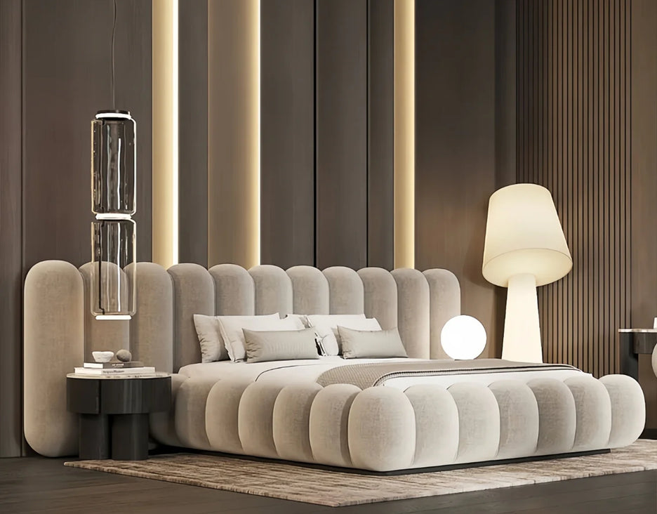 Bellagio Curve Bed Frame Petal Cylinder Headboard Upholstered Bed Bellagio Curve Bed Frame Petal Cylinder Headboard Upholstered Bed